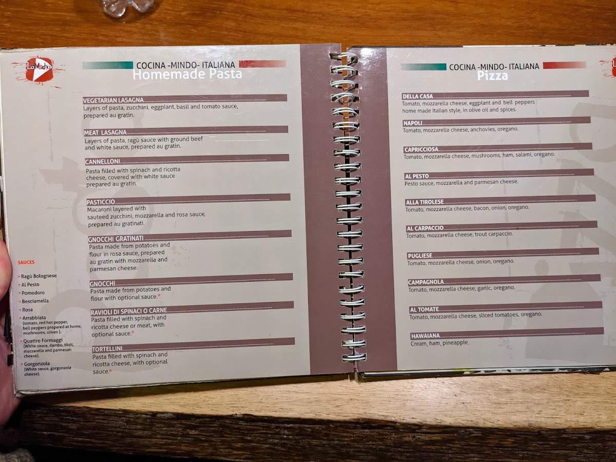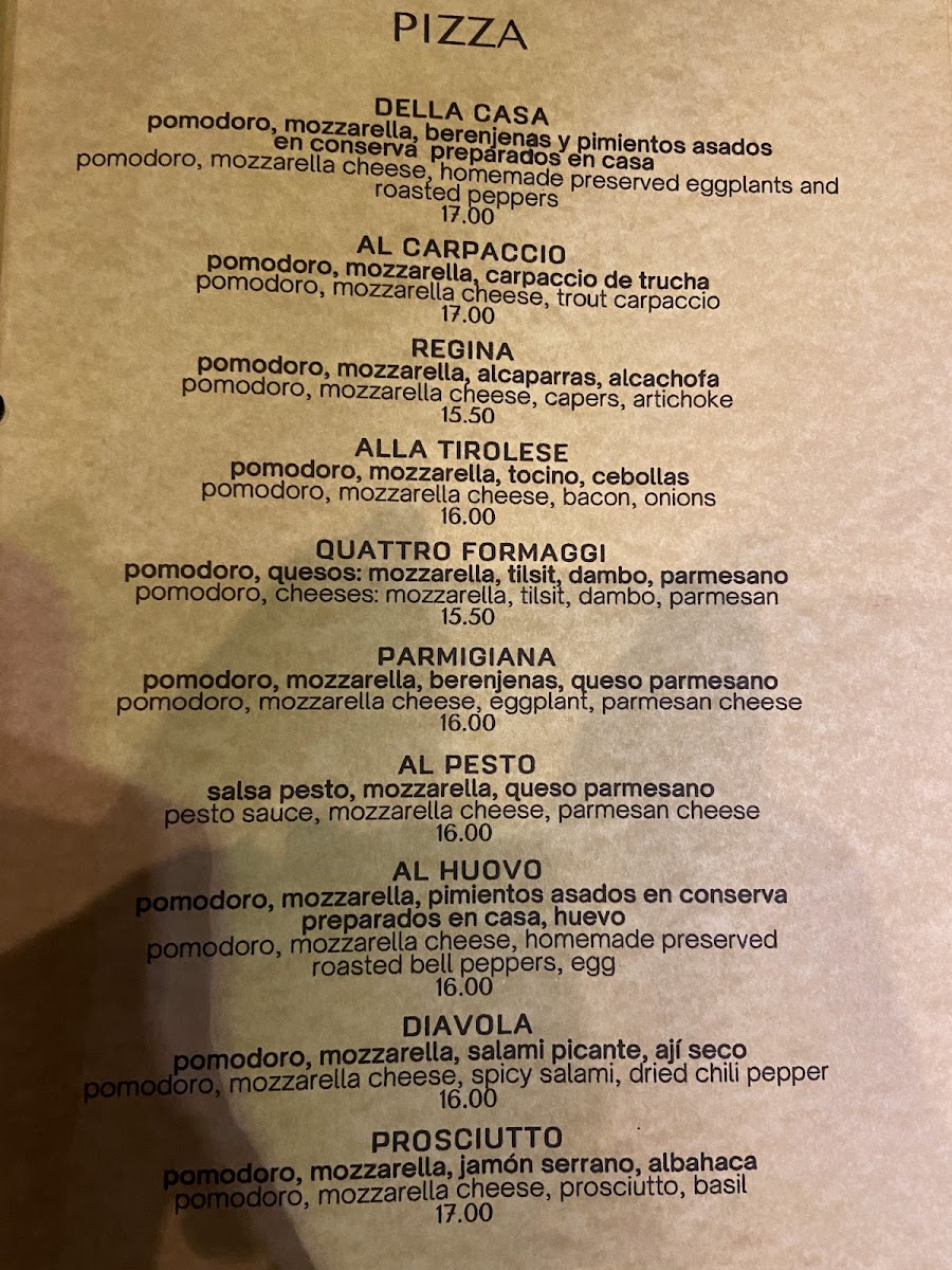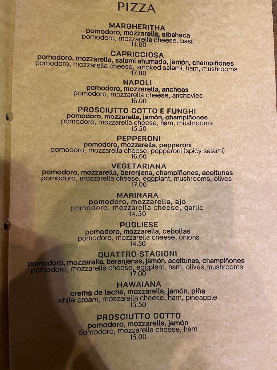 The menu at La Mecha Ristorante reflects a confident, well-balanced Italian identity that focuses on comforting classics and crowd-pleasing flavors rather than unnecessary complexity. Starters such as Bread, Al Carpaccio, Antipasto de la Mecha, and Instalata Capresse set a solid foundation, offering fresh, familiar combinations that prepare the palate without overwhelming it. The pizza selection is clearly a centerpiece of the menu, with options like Pizza Caprichosa Y Proscciutto, Capricciosa, Diavolo Pizza, Pizza de la Casa, and Pizza Peperoni showcasing a range from traditional to slightly bolder profiles, all designed to satisfy both purists and adventurous diners. Pasta dishes further reinforce the restaurant’s Italian focus, with baked and handmade options such as Gnocchi Al Horno, Gnocchi Gratinati, Lasagna Di Carne, Lasagne Con Carne, and Cannelloni Di Espinaca, each emphasizing hearty textures and rich sauces. The ravioli selection, including Ravioli Con Carne and Ravioli Di Spinaci Con Pesto, adds variety and highlights careful attention to fillings and balance. Beverage offerings like Americano Expresso, Gin Tonic, and Cervezas complement the food well, allowing guests to pair their meals with both classic and casual drink choices. Overall, the menu feels cohesive and intentional, with each dish contributing to a clear narrative of traditional Italian comfort food adapted for a relaxed dining experience, making it easy for guests to navigate and enjoy without hesitation.